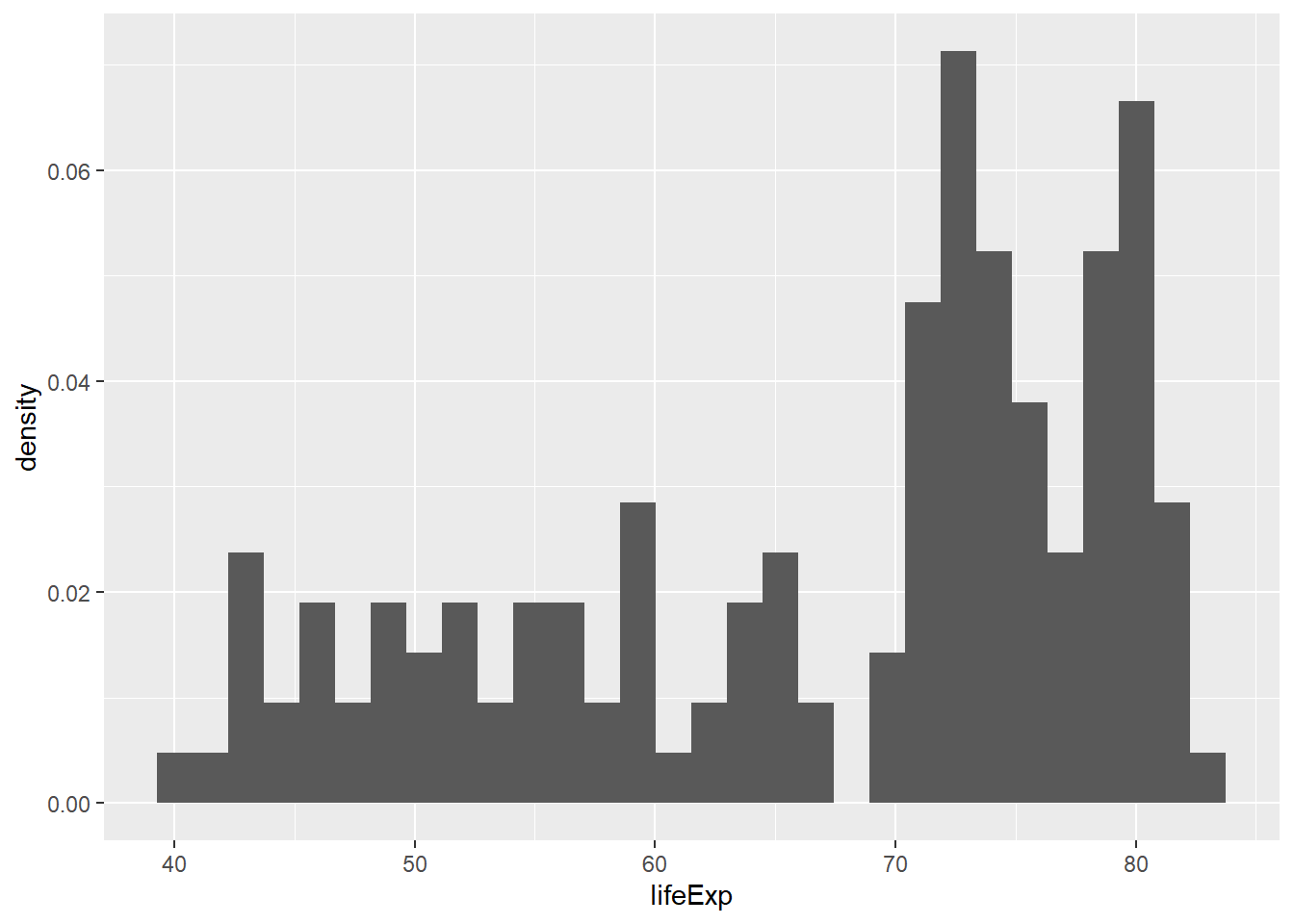## `stat_bin()` using `bins = 30`. Pick better value with `binwidth`.