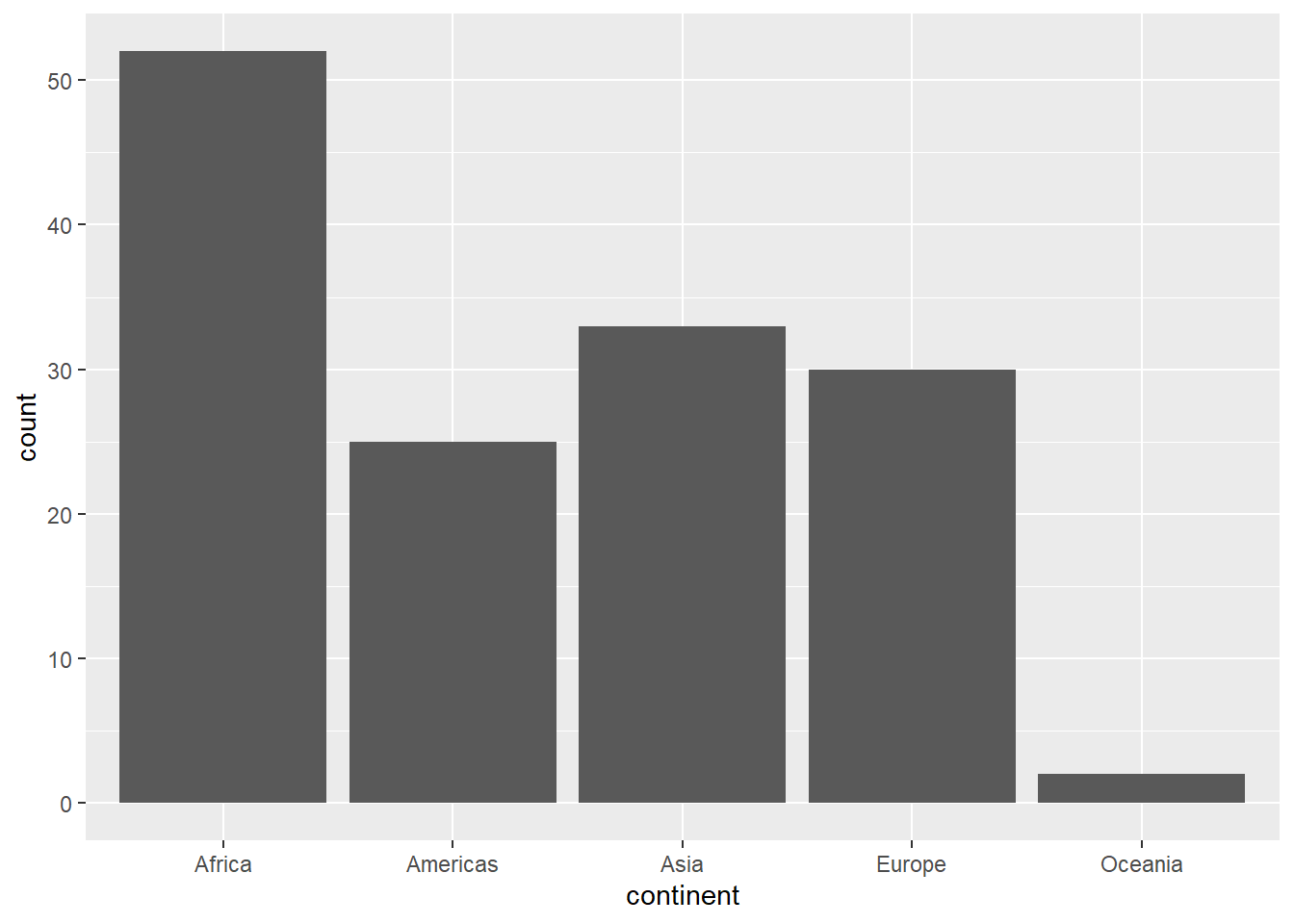 ggplot(n_country) + geom_bar(aes(x=continent))