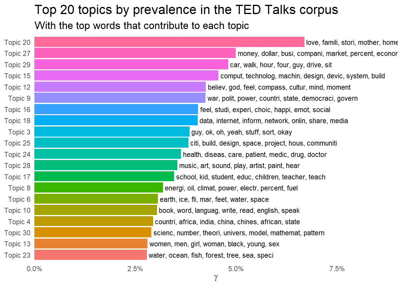 title = "Top 20 topics by prevalence in the TED Talks corpus",