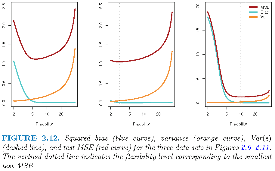 - As we increase flexibility of a class of methods, bias tends to initially decrease faster than the variance increases