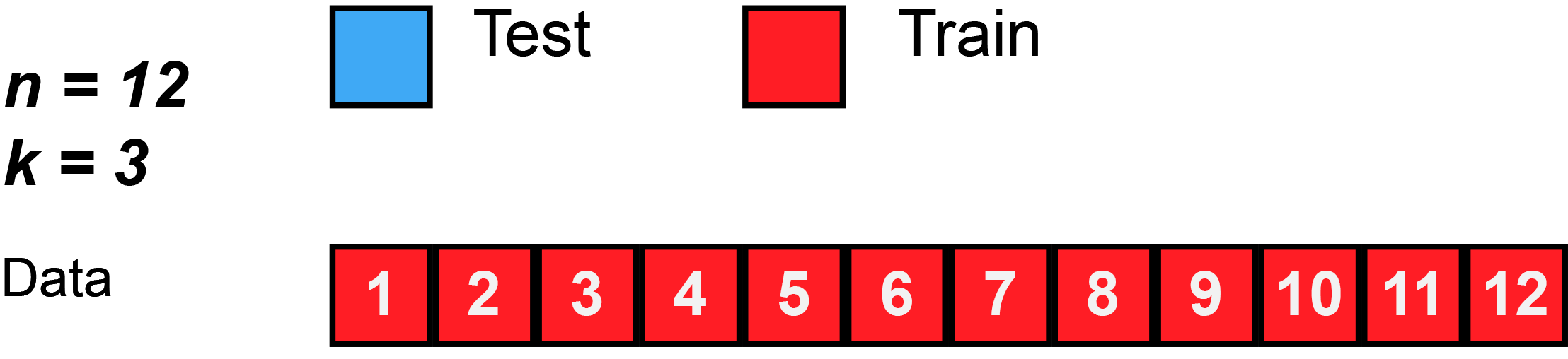 - James et al. (2013) use Figure 5.5 [p.179] to explain the k-Fold Cross-Validation. Please inspect the figure and explain it in a few words.