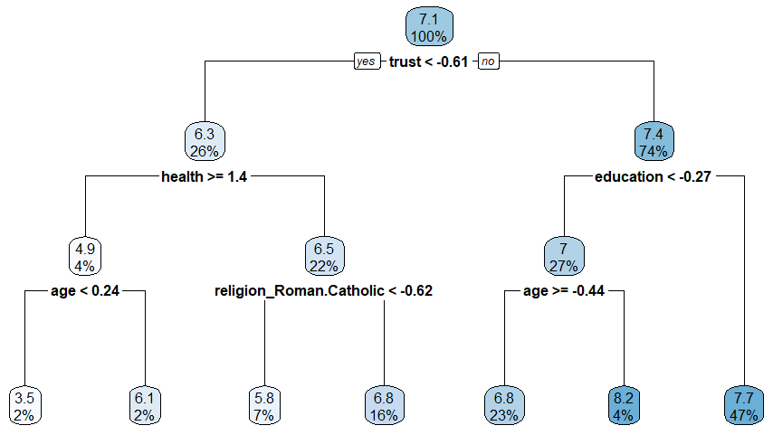 - Figure 1 shows an exemplary tree based on our data (ESS: Predicting lifesatisfaction)