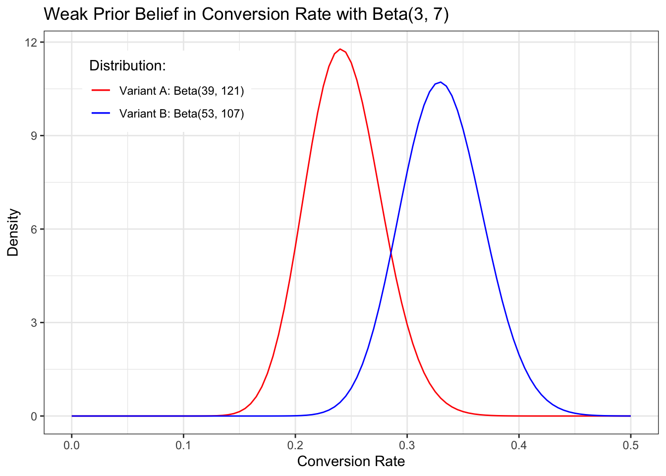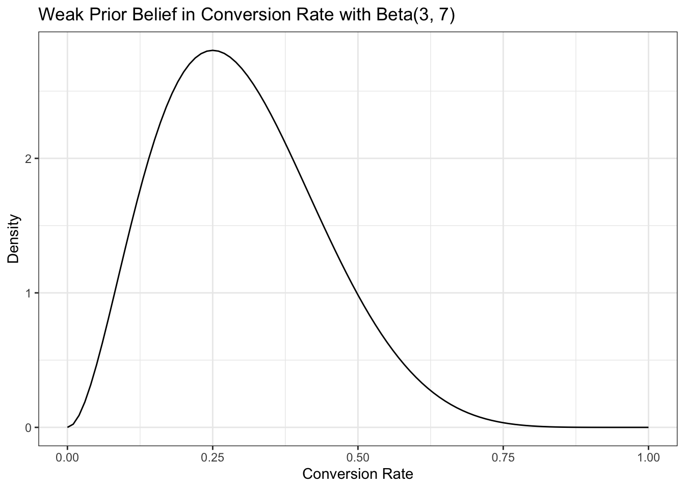 title = "Weak Prior Belief in Conversion Rate with Beta(3, 7)",