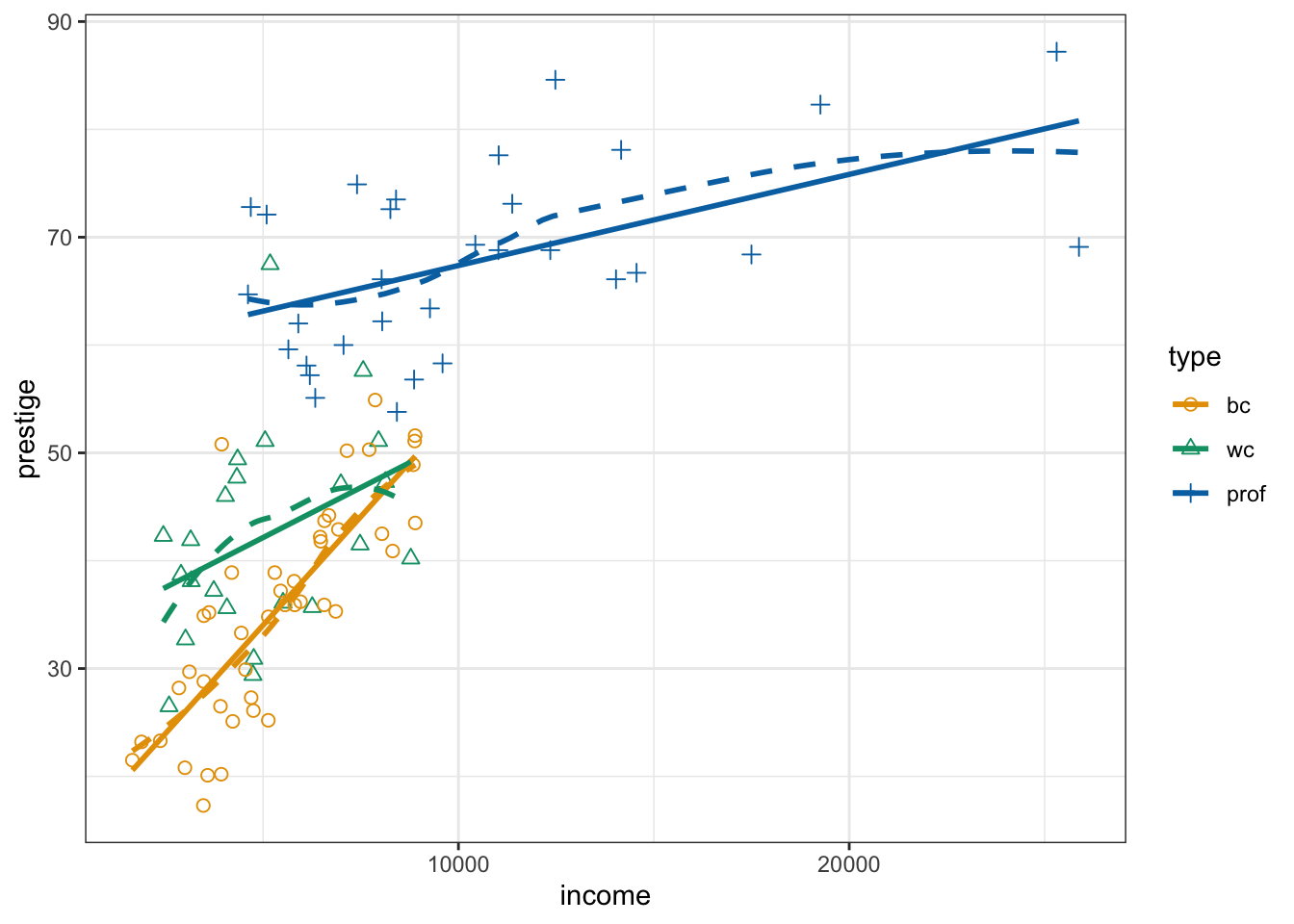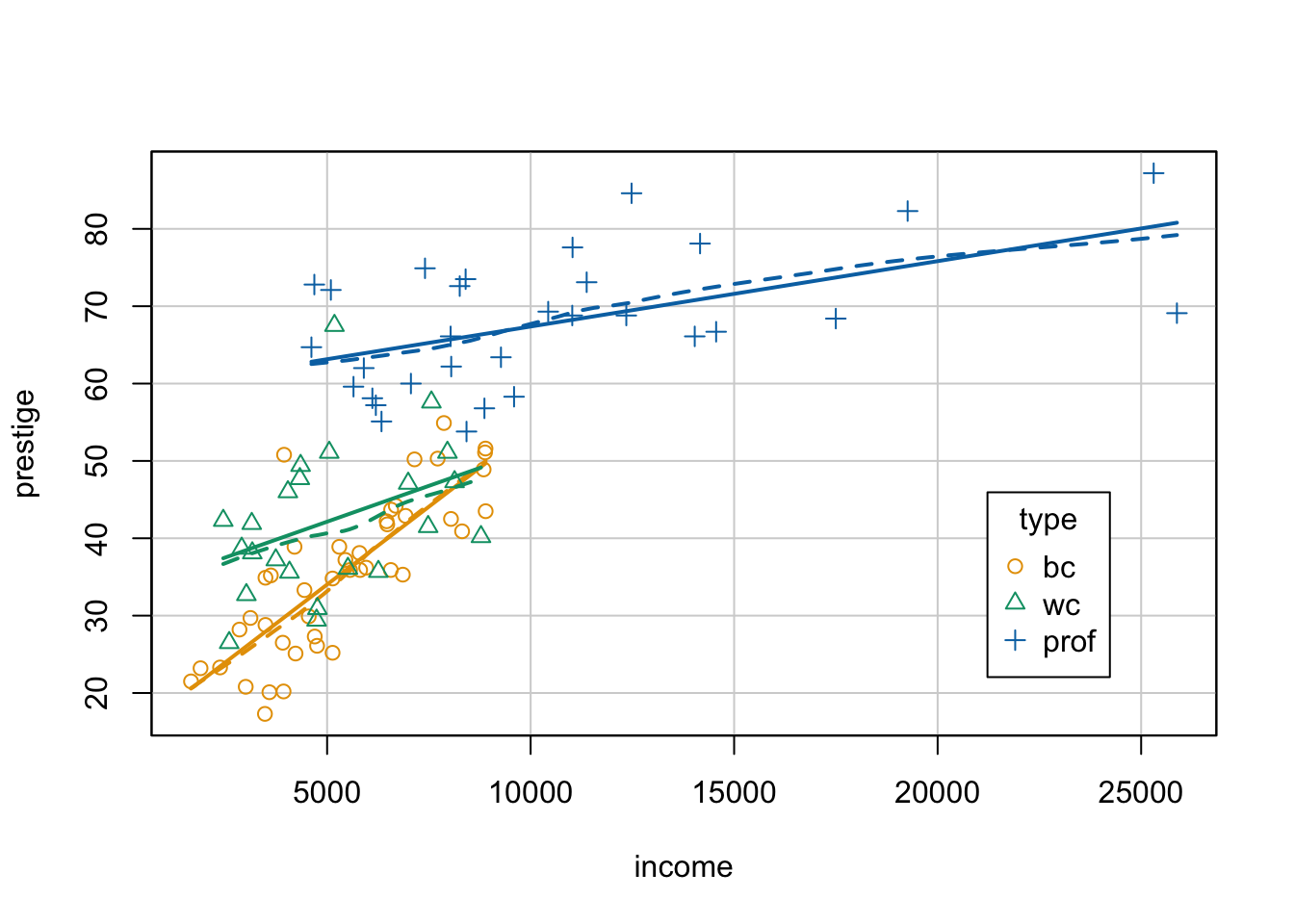 car:::bcPowerAxis(),car:::bcnPowerAxis(), andcar:::probabilityAxis()may be used similarly to produce axes on the untransformed scale corresponding to Box-Cox, Box-Cox with negatives, and logit transformations.↩︎