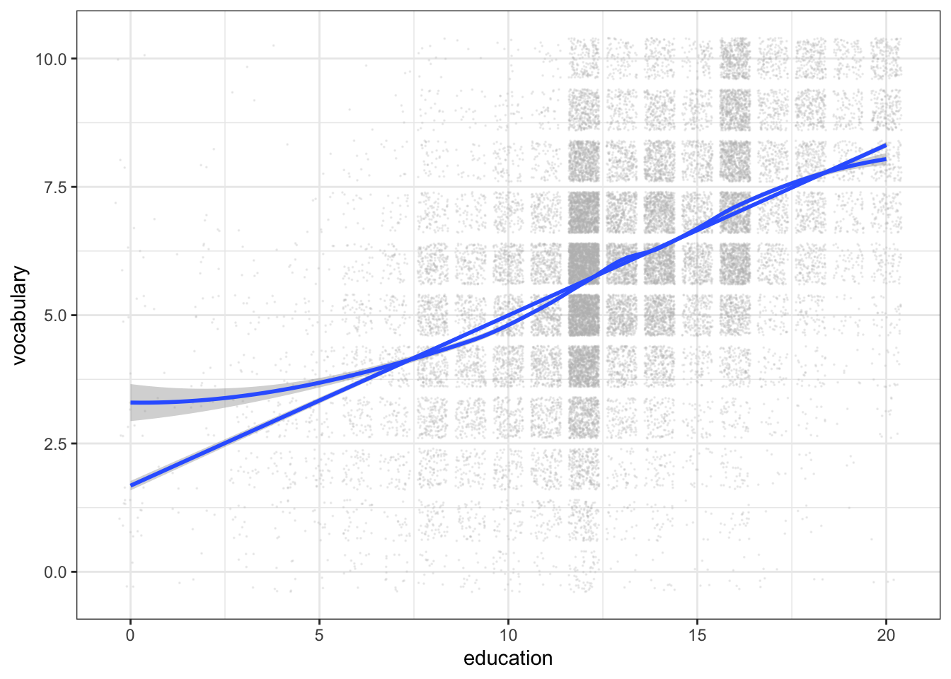 Nonparametric density estimation often produces a more satisfactory representation of the distribution of a numeric variable than a traditional histogram. Unlike a histogram, a nonparametric density estimate is continuous and so it doesn’t dissect the range of a numeric variable into discrete bins.