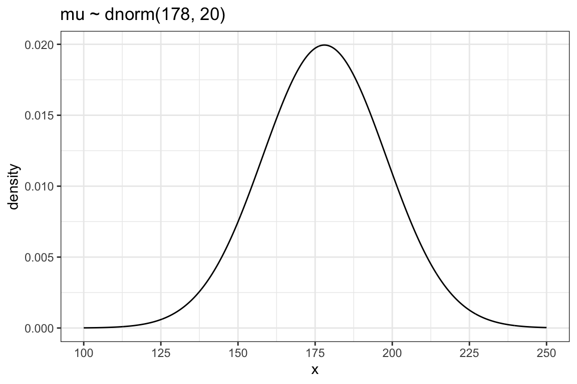 In this section we want a single measurement variable to model as a Gaussian distribution. It is a preparation for the linear regression model in Section 4.4 where we will construct and add a predictor variable to the model.