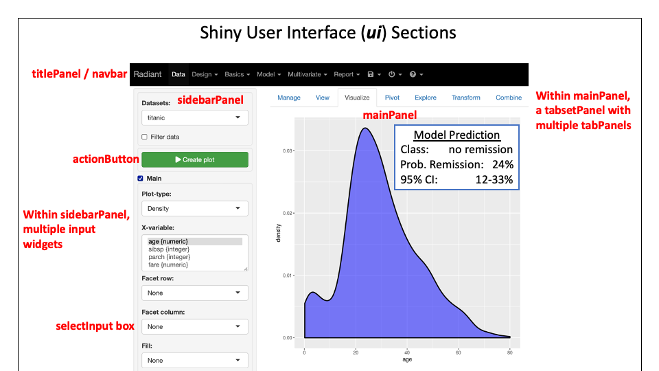 titlePanel()sidebarPanel()with specifictypeInputs()mainPanel()with specifictypeOutputs()