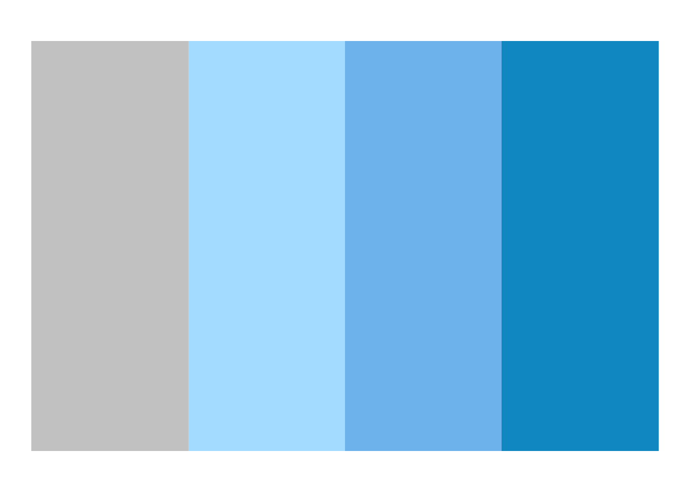 For example, in comparing outcomes for 3 dose levels of the active intervention (low, medium, and high) to a placebo or vehicle control, you could use a color palette that goes from gray to blue3 to show the progression of the dose levels. This would help your audience quickly identify the control group, and the low, medium, and high dose groups in your plots. Copy and run this code in your local RStudio to see the colors in action. This clear translation of increasing exposure to the treatment to color intensity will help viewers understand the meaning of your plots.