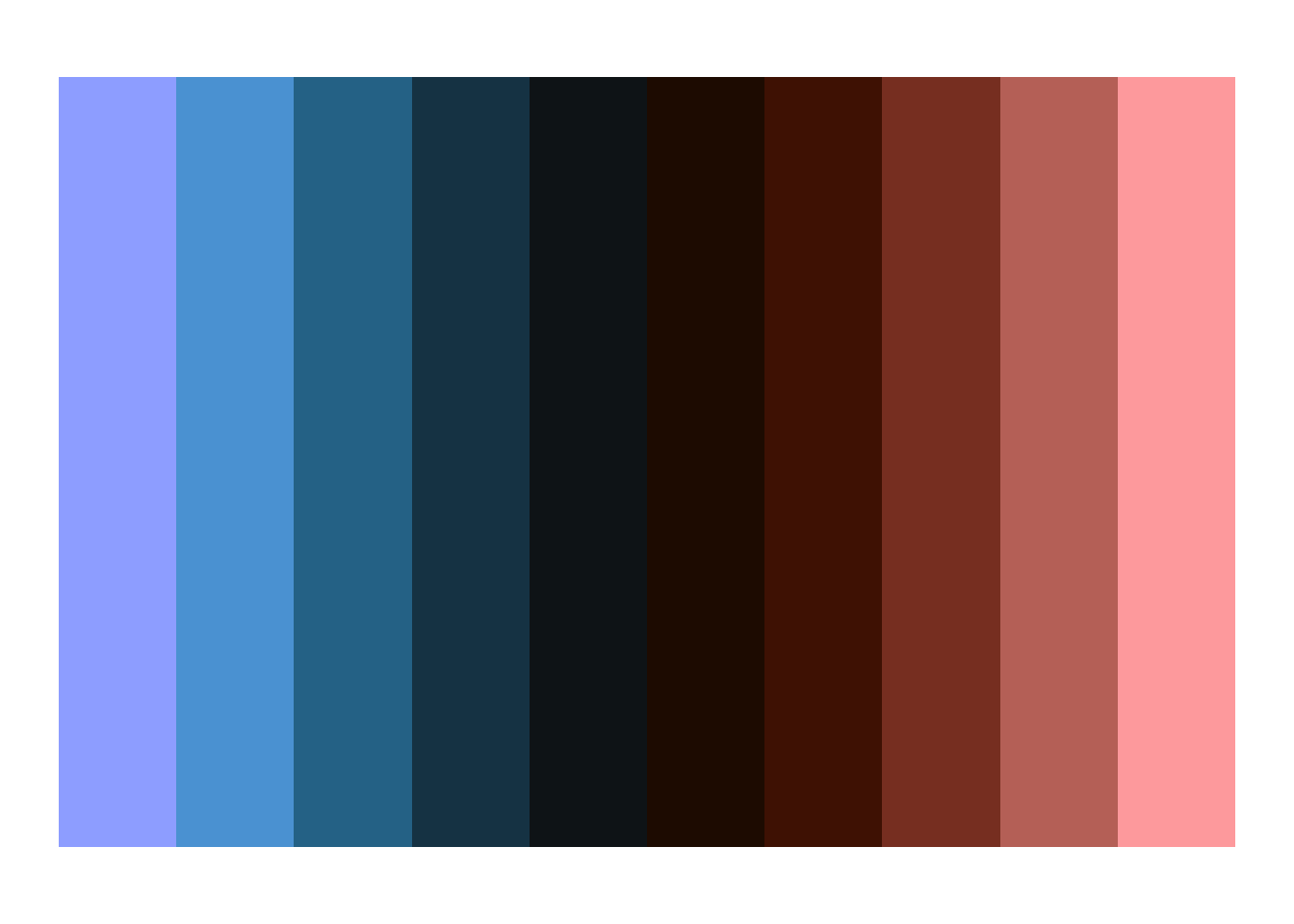 ## #9EB0FFFF #5AA3DAFF #2D7597FF #194155FF #11181DFF #270C01FF #501802FF #8A3F2AFF #C37469FF #FFACACFF