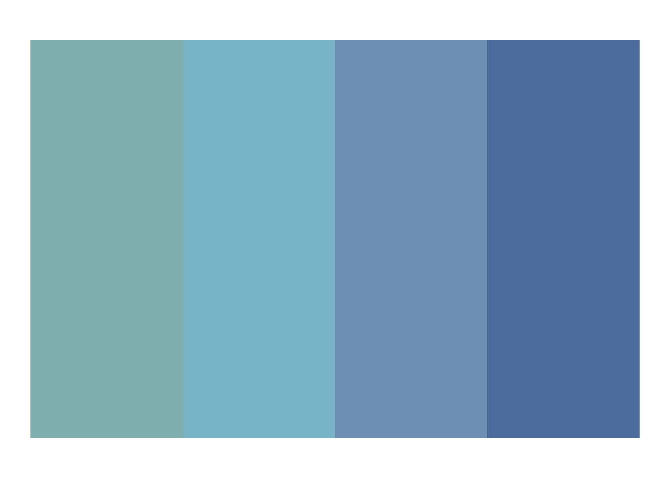 The frost palette is a discrete palette that goes from a light greenish blue to a dark slate blue, and is useful for showing distinct categories. It comes from the nord package.