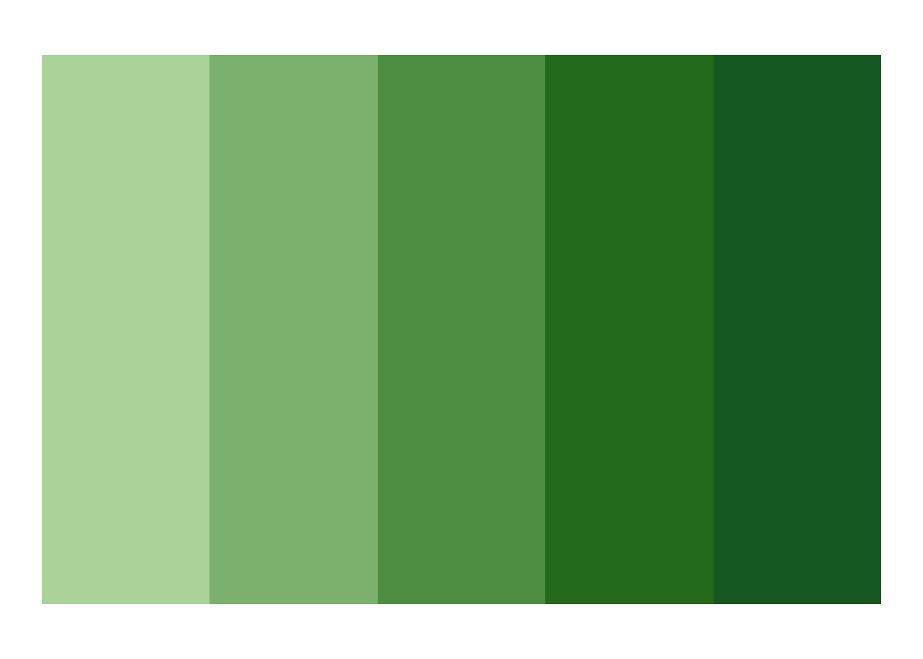 The green.pal palette is a dynamic palette that goes from light green to dark green, and is useful for showing a range of categories.