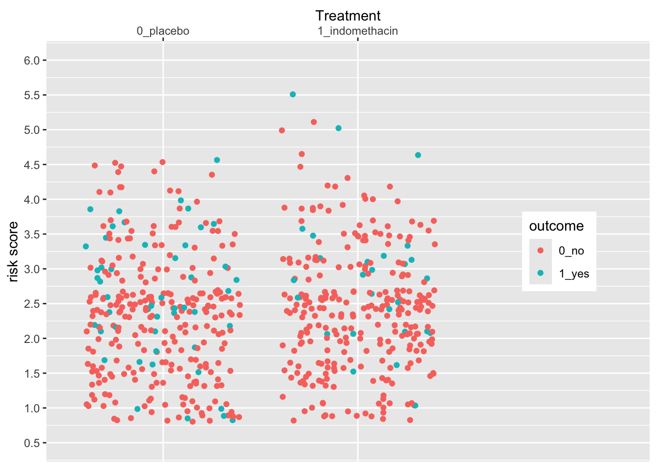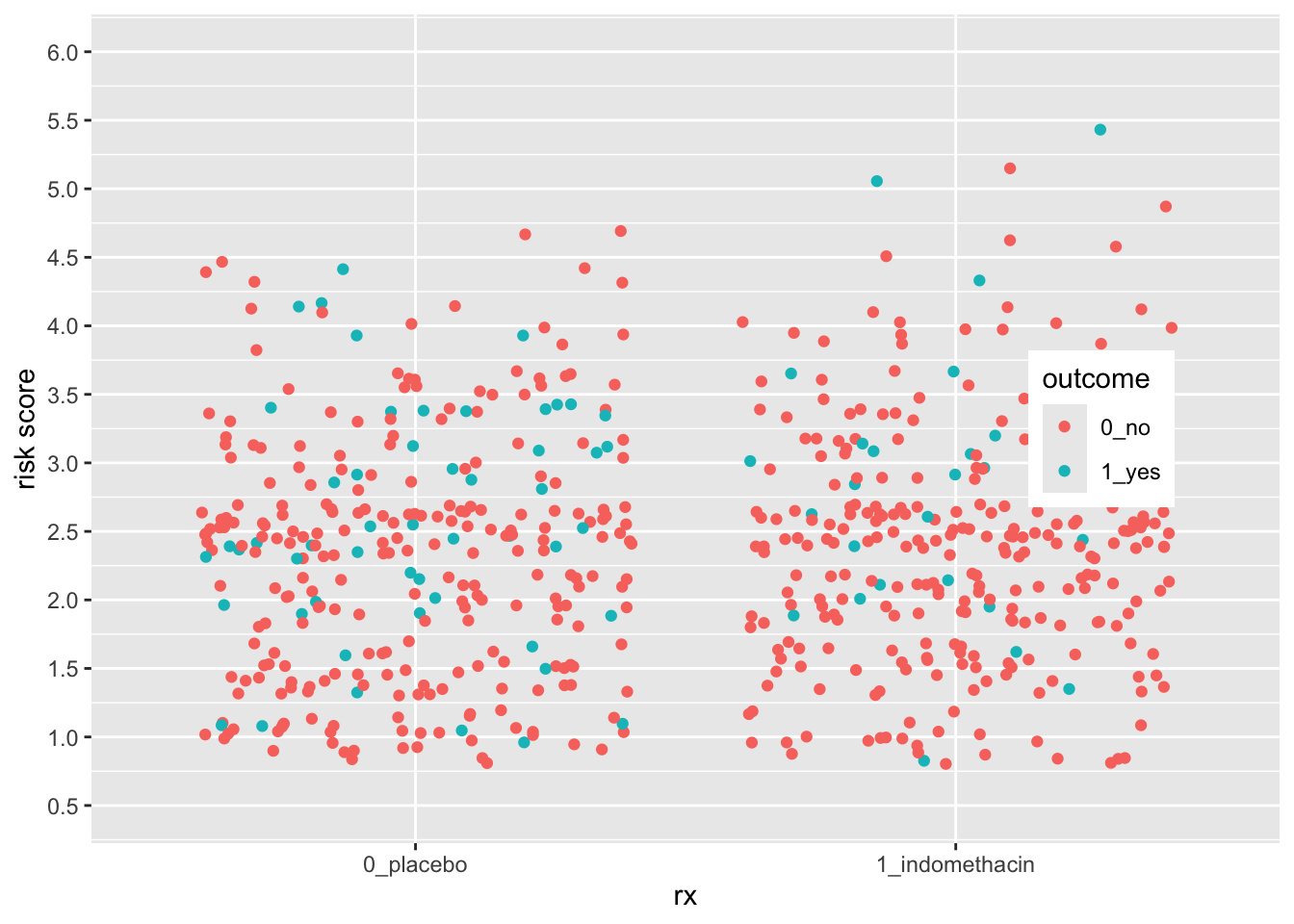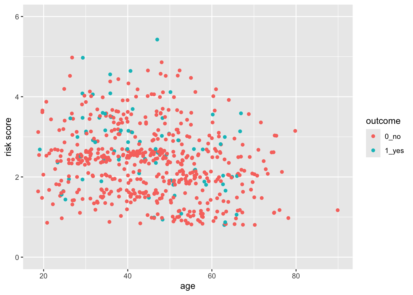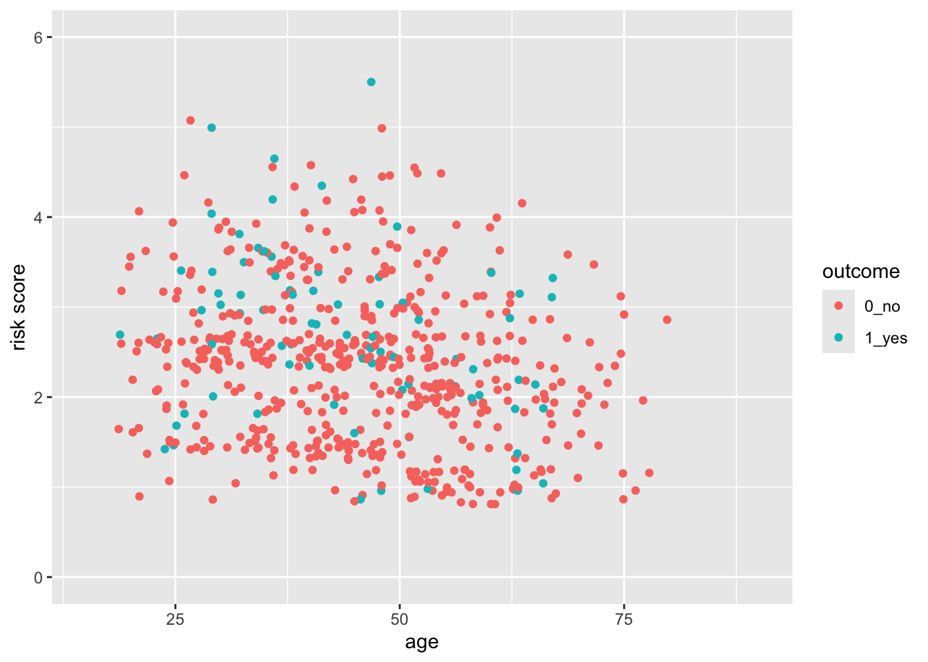 Let’s start with a scatterplot of age vs risk of PEP in the indo_rct dataset