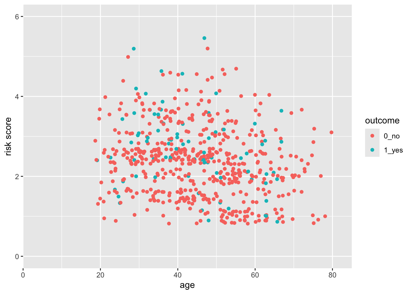 You can see that ggplot picks sensible breaks, but the defaults might not always work for you. Let’s change the risk scale to breaks of 0.5, using the breaks argument. Note that using the limits argument also lets you establish the limits of the y-axis.