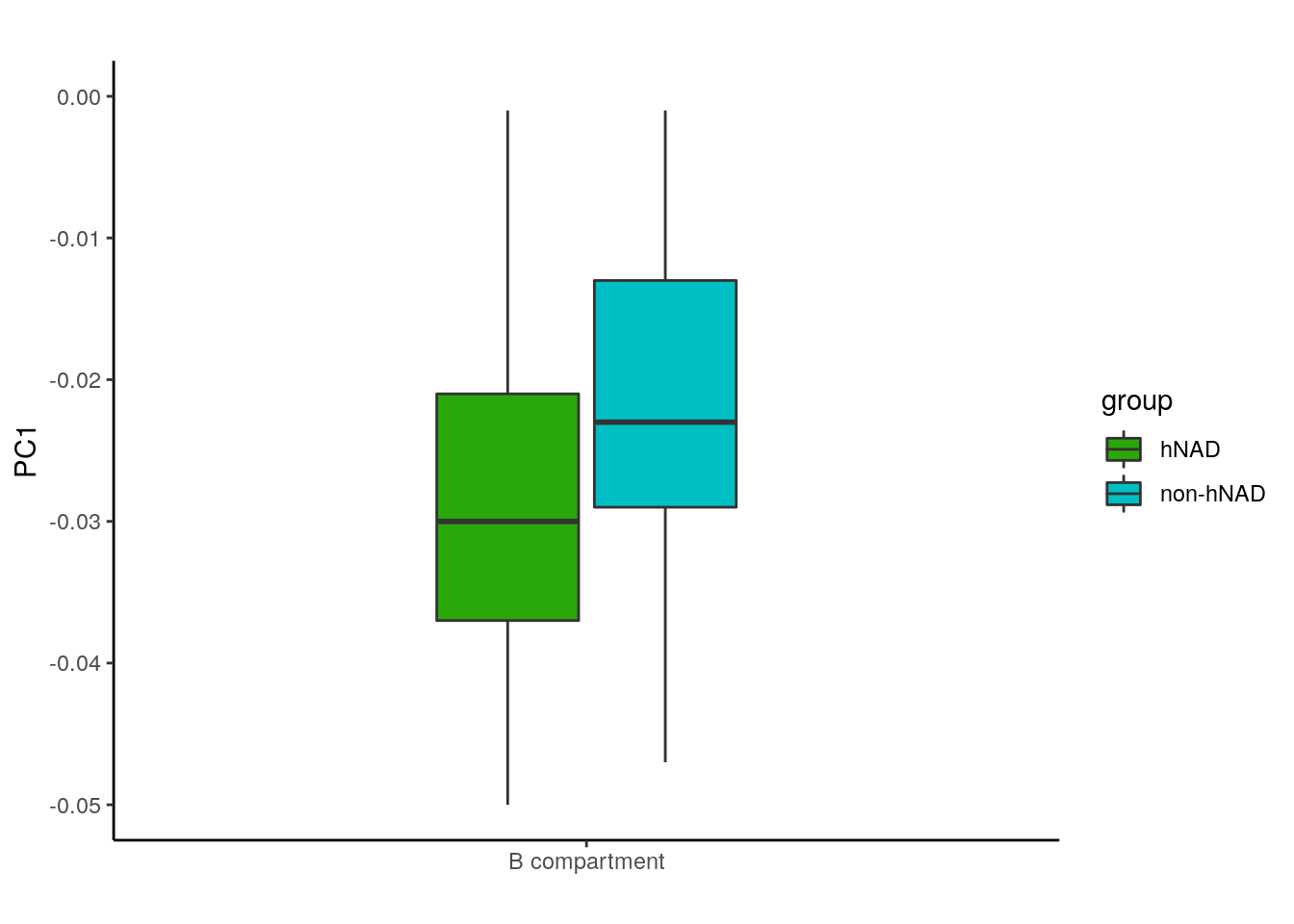 df = data.frame(pc1 = c(nair_pc1$V6,b_compartment$V6),group = c(rep('hNAD',dim(nair_pc1)[1]),