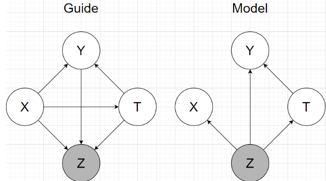 We know that VAE only encode X to z, then z decode to output. In our case, our guide need addition y,t to compute z. That’s why the authors said we need to predict those two.