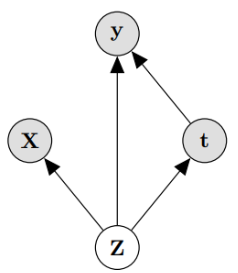 - \(\text { y is independent of } \mathbf{X} \text { given } \mathbf{Z}, \text { and we obtain: } p(\mathbf{y} | \mathbf{X}, d o(\mathbf{t}=1))=\int_{\mathbf{Z}} p(\mathbf{y} | \mathbf{t}=1, \mathbf{Z}) p(\mathbf{Z} | \mathbf{X}) d \mathbf{Z}\)