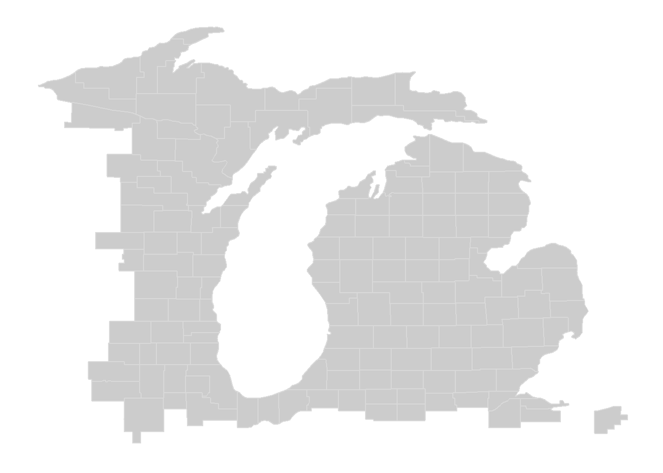 borders("county", colour = "gray85", fill = "gray80", xlim = c(-89, -82), ylim = c(41.5, 48)) +