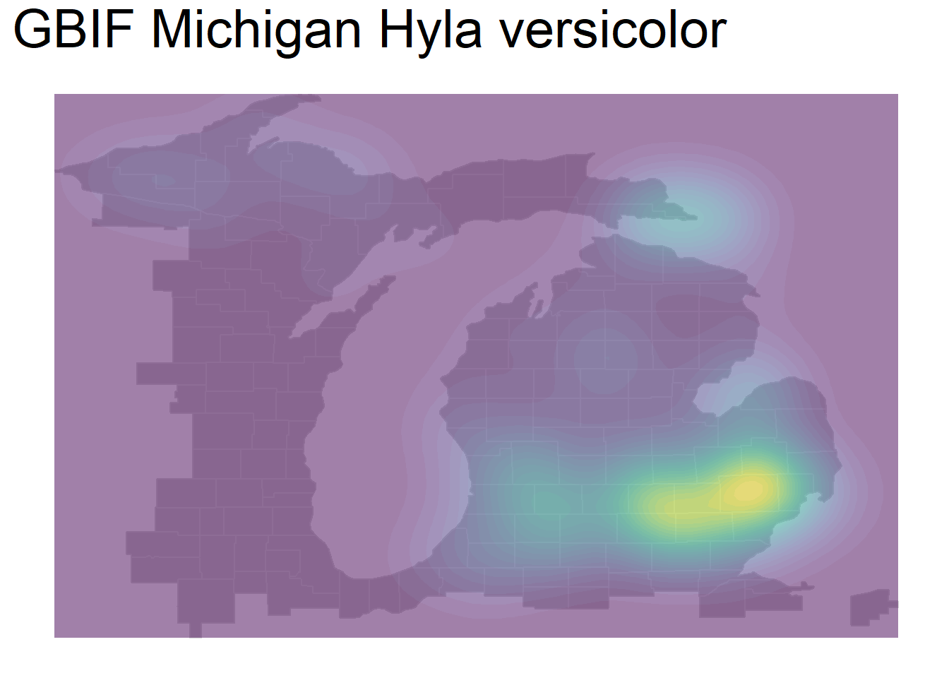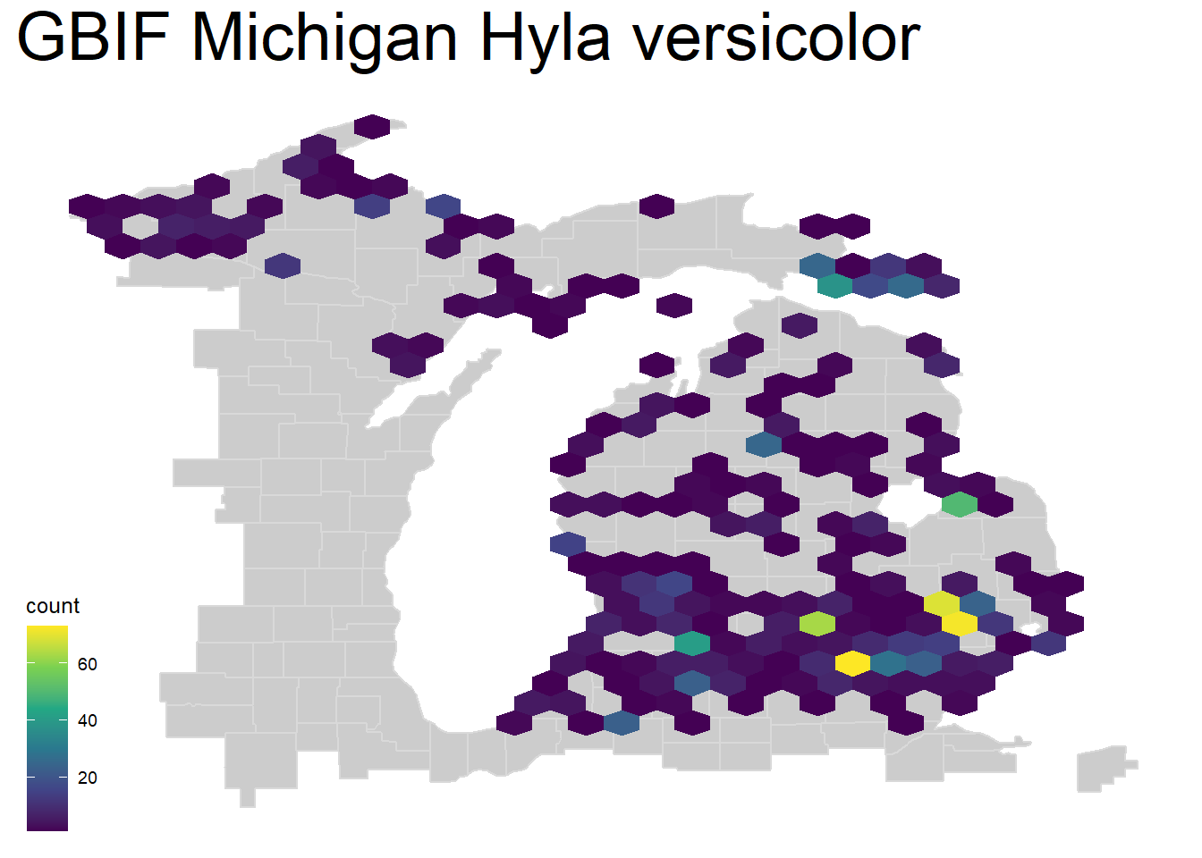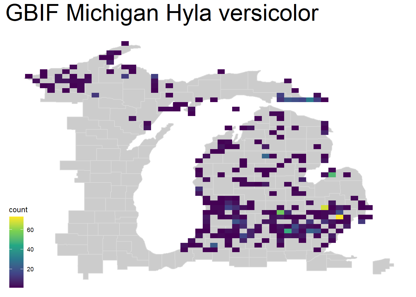 labs(title = 'GBIF Michigan Hyla versicolor') +