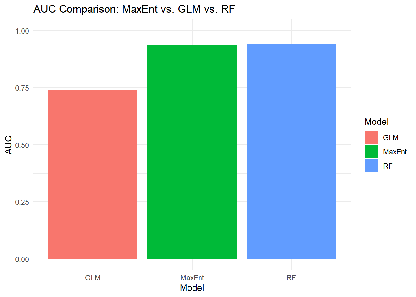 ggtitle("AUC Comparison: MaxEnt vs. GLM vs. RF") +