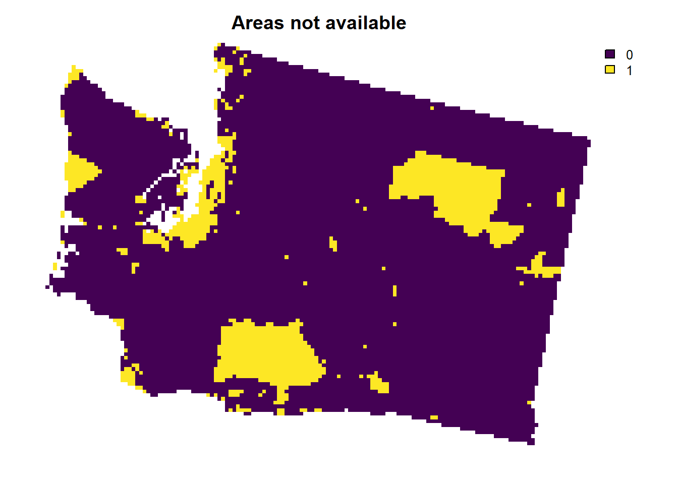 plot(wa_locked_out, main = "Areas not available", axes = FALSE)