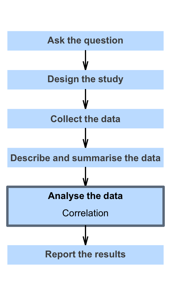 So far, you have learnt to ask a RQ, identify different ways of obtaining data, design the study, collect the data describe the data, summarise data graphically and numerically, understand the tools of inference, to form confidence intervals, and to perform hypothesis tests.