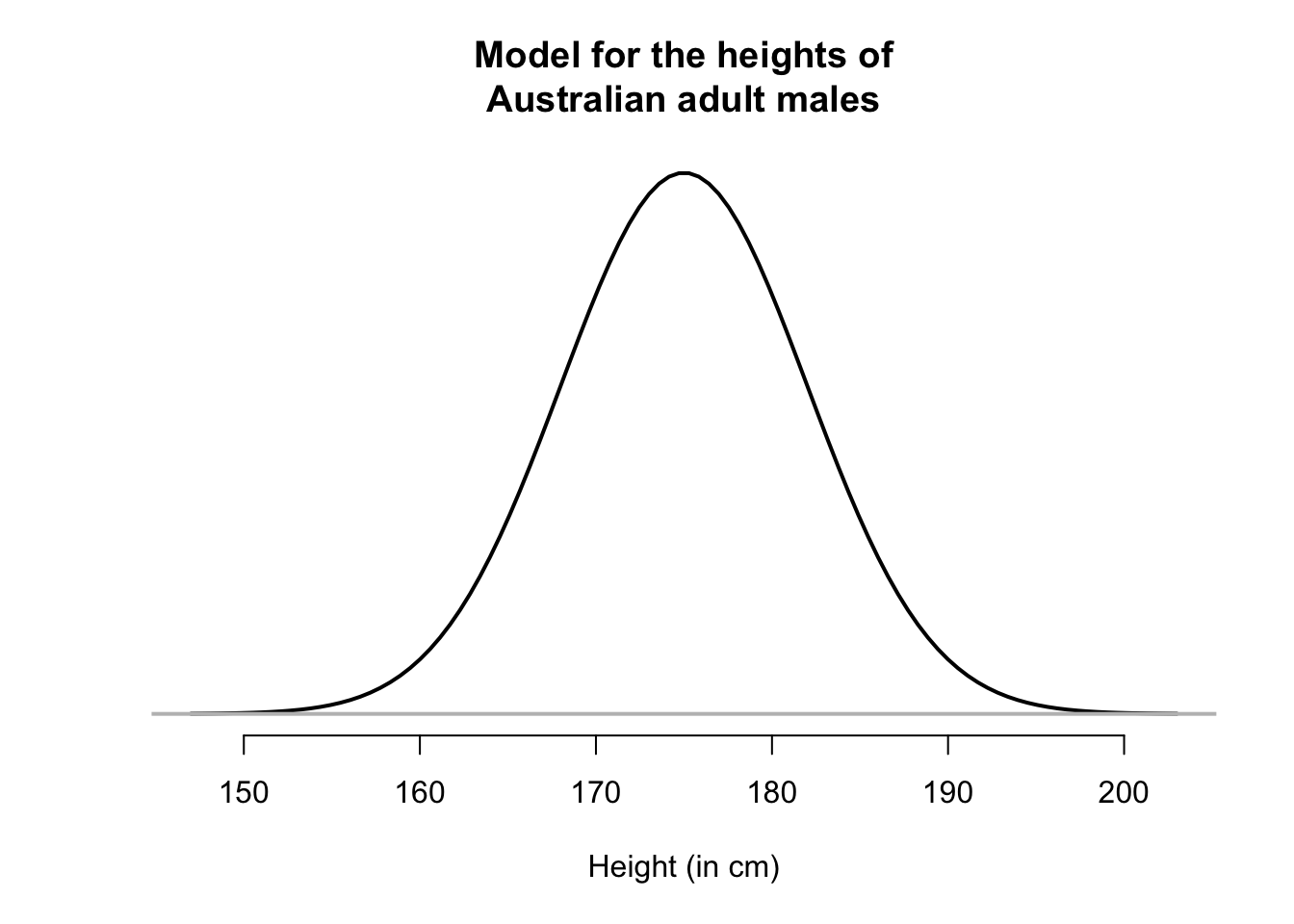 For convenience then, histograms may be smoothed, so that the smoothing produces a shape that represents an ‘average’ of all these possible sample histograms (in other words, an estimate of how the heights may be distributed in the population). For example, see the animation below. The solid line represents the average of many sample histograms.