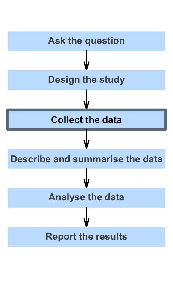 So far, you have learnt to ask a RQ, identify different ways of obtaining data, and design the study.