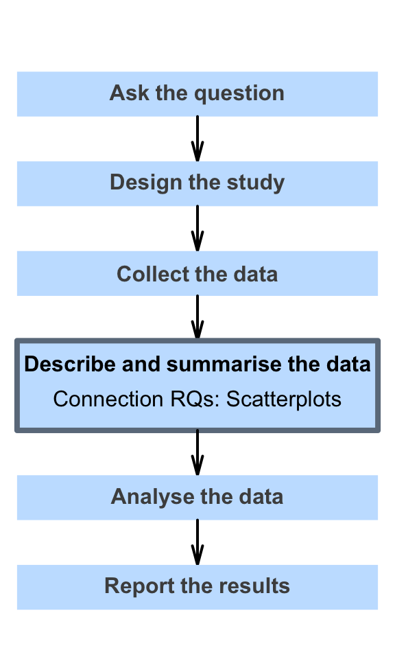 So far, you have learnt to ask a RQ, identify different ways of obtaining data, design the study, collect the data describe the data, summarise data graphically and numerically, understand the tools of inference, to form confidence intervals, and to perform hypothesis tests.