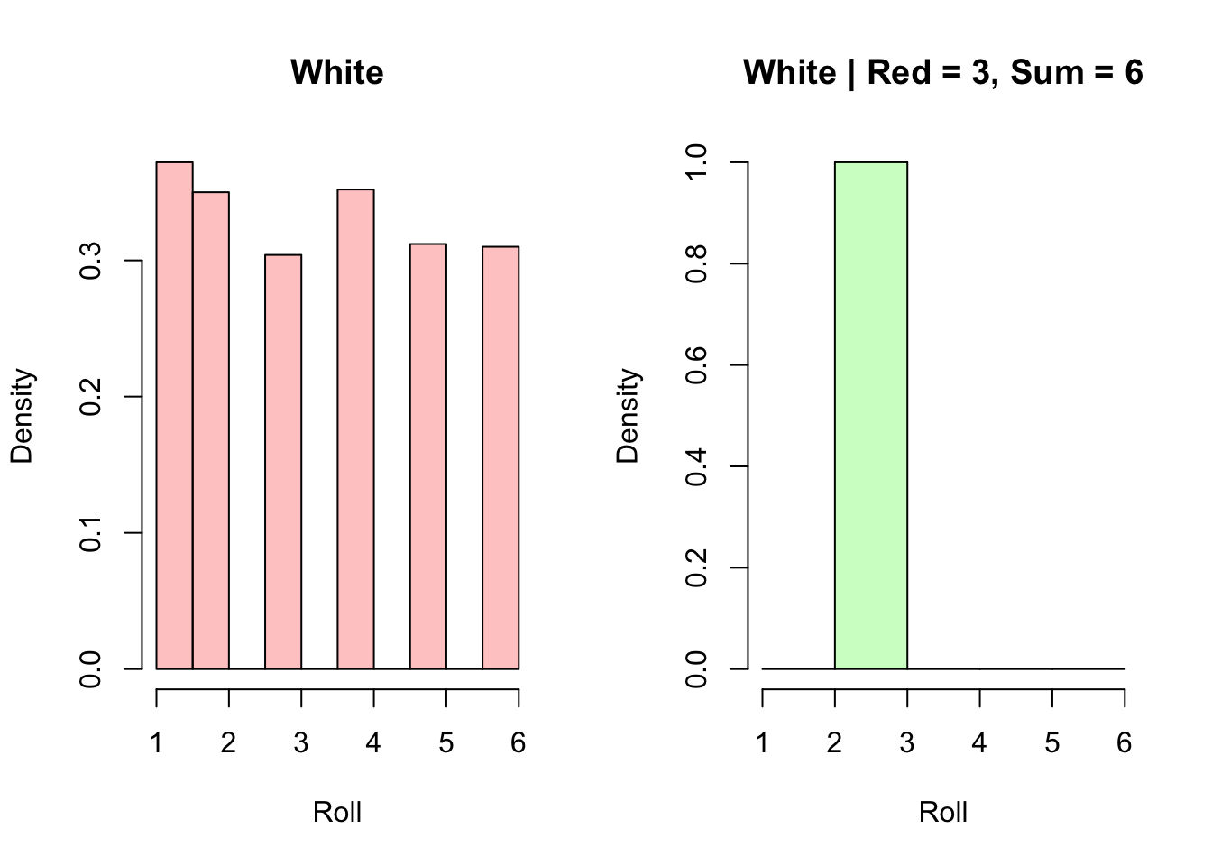 Recall in Chapter 1 that we began to work with probability; however, we only operated in a ‘naive’ setting. That is, we worked with cases where we assumed that all outcomes were equally likely: i.e., coin flips. die rolls, etc. It was ok, then, to just use the naive definition of probability: count all of the favorable outcomes and divide by the number of total outcomes (in turn, this required us to learn a variety of counting methods and strategies). However, it’s clear that outcomes are often not equally likely, or that the probabilities of certain events depend on the outcomes of other events. This is why we need conditional probability. In our notation, \(P(A|B)\) means “the probability of \(A\) given that \(B\) occurred.”