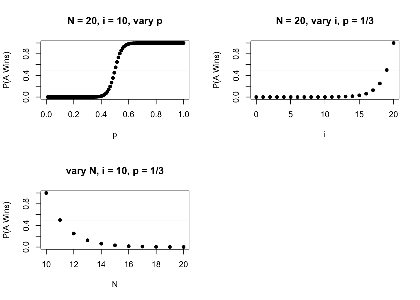 - Generalize the above to a Monty Hall problem where there are \(n \geq 3\) doors, of which Monty opens m goat doors, with \(1 \leq m \leq n - 2\).