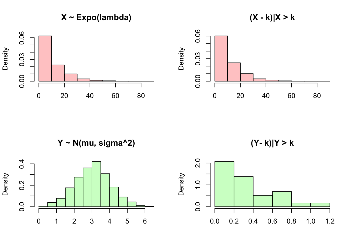 Let \(X \sim Expo(\lambda)\) and \(Y = X + c\) for some constant \(c\). Does \(Y\) have an Exponential distribution? Use intuition about the Exponential distribution to answer this question.