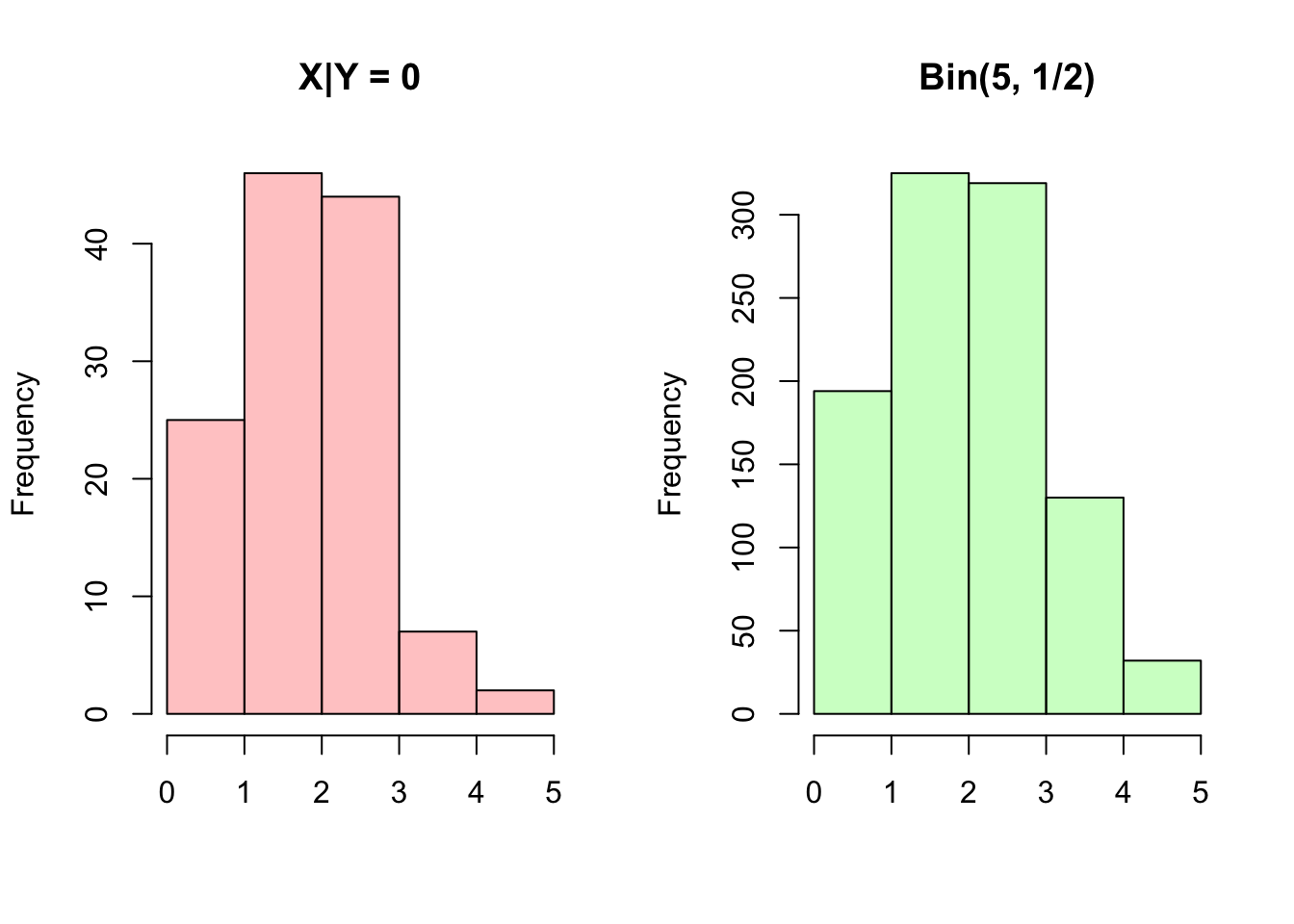 hist(X, main = "X", col = rgb(1, 0, 0, 1/4), xlab = "")
