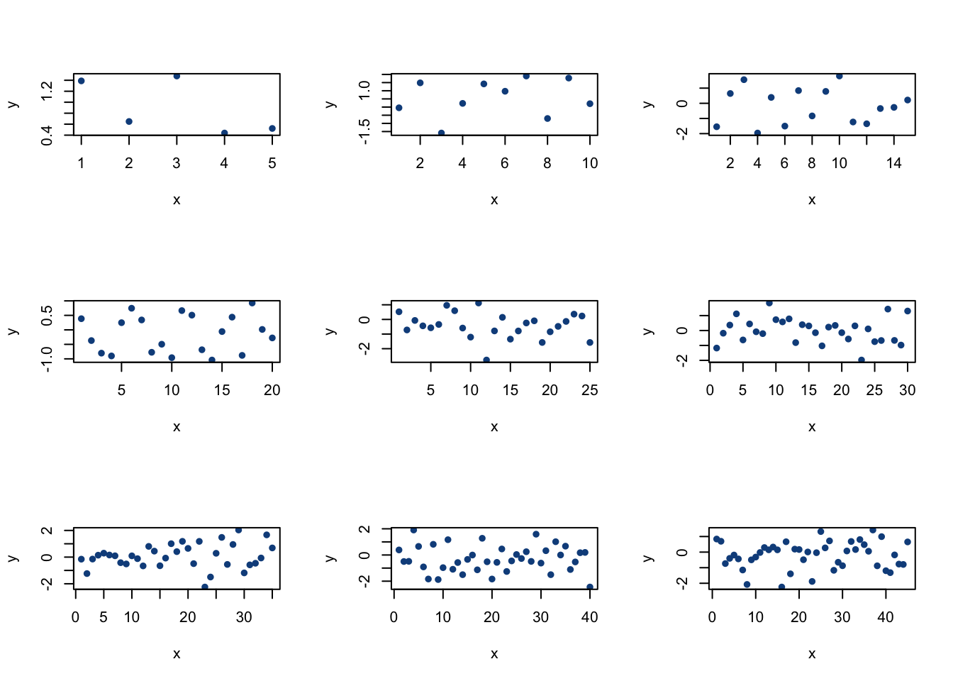 For \(i = 1,2,...\). We let \(X_i\) be random ‘shocks’ such that the \(X_i\) terms are i.i.d. \(N(0, 1)\) r.v.’s.