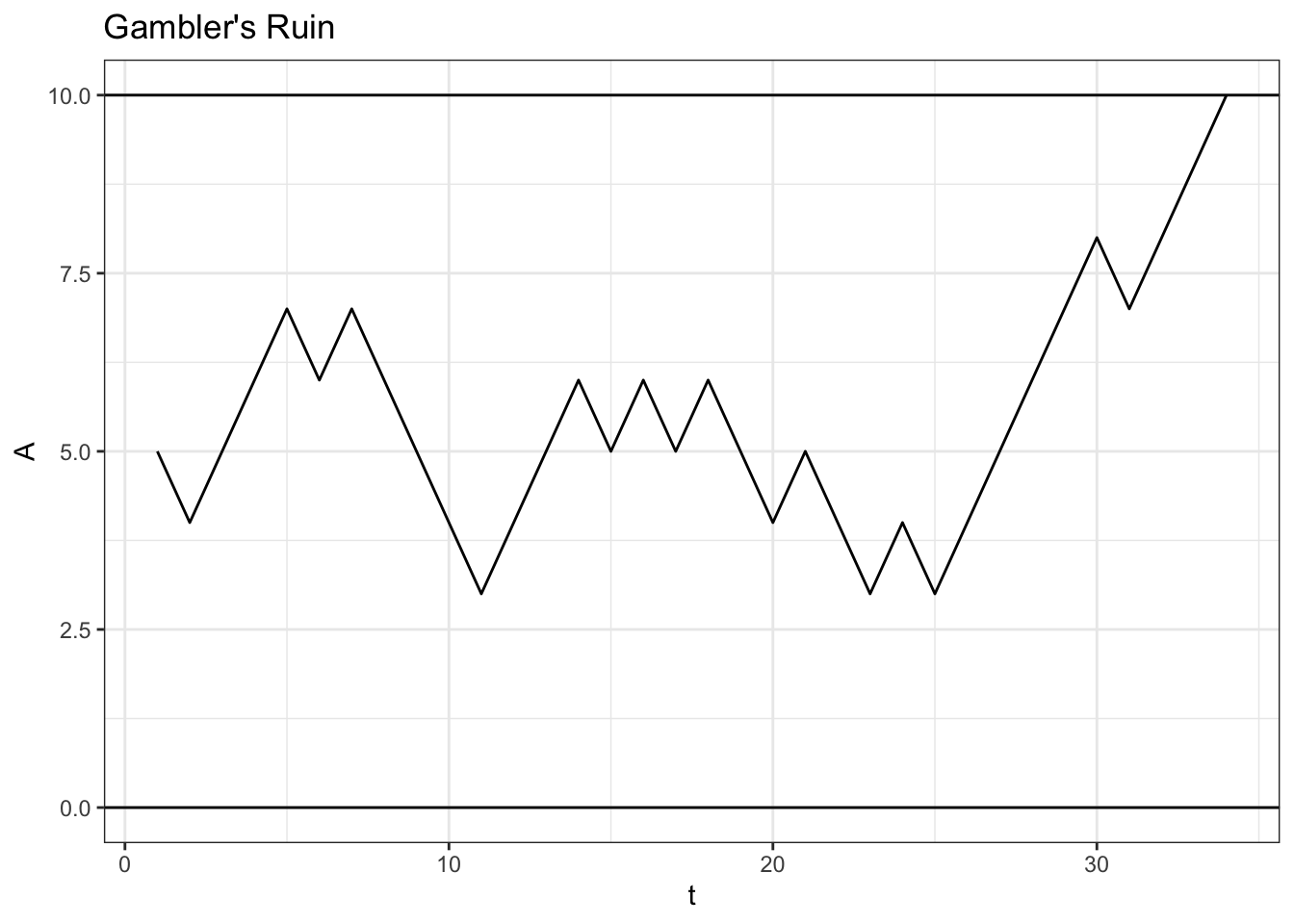 ggtitle("Gambler's Ruin (N = 10, j = 5)") +