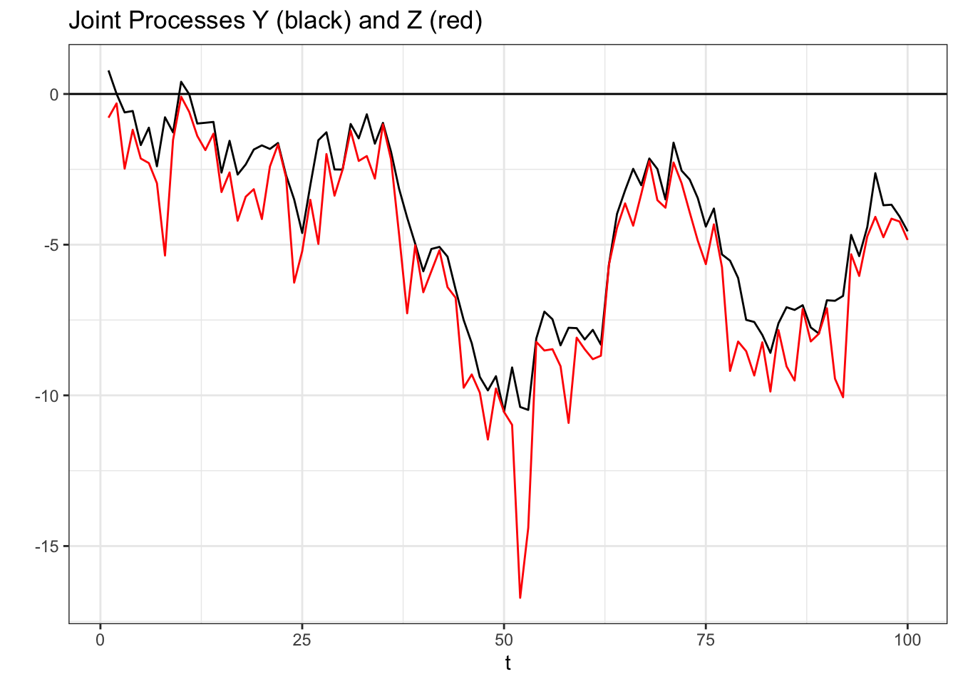 ggtitle("Joint Processes Y (black) and Z (red)") +