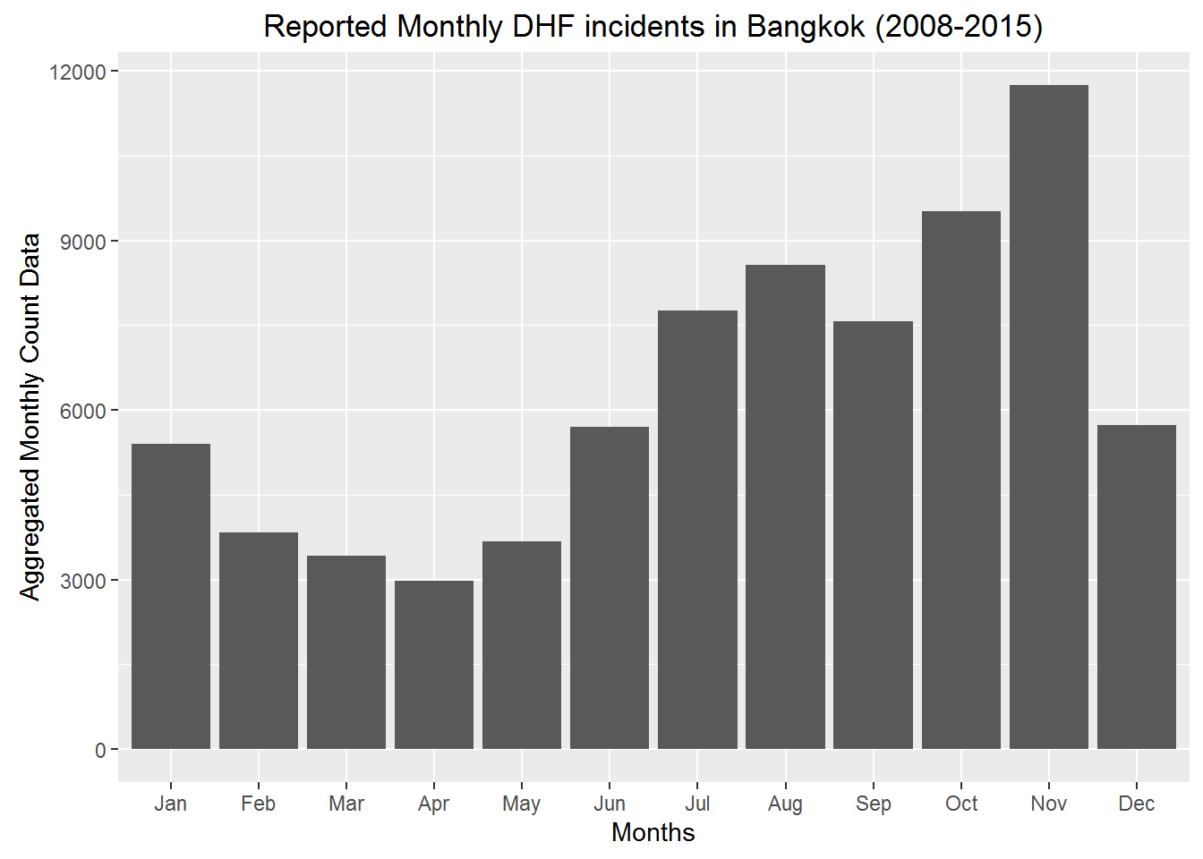 The above plot shows that most of the DHF incidents were reported in the month of October and November.