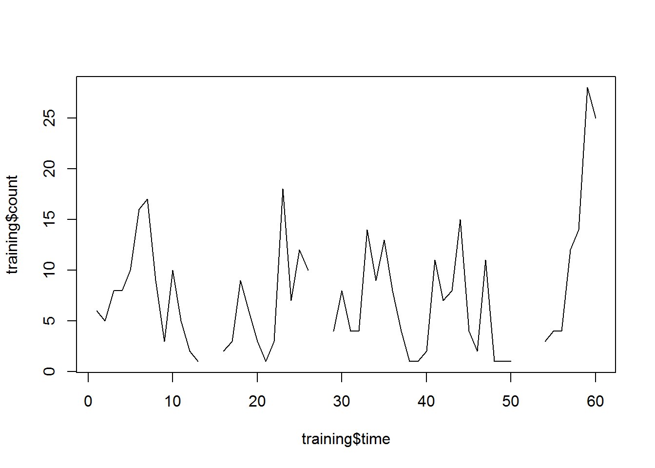 accuracy(f = pred, x = bayesianDF.test[, "count"]) ME RMSE MAE MPE MAPE