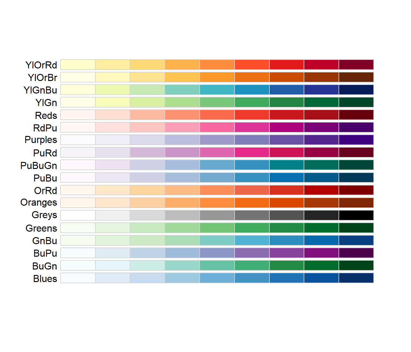 14.2.2.1 RColorBrewer palettes