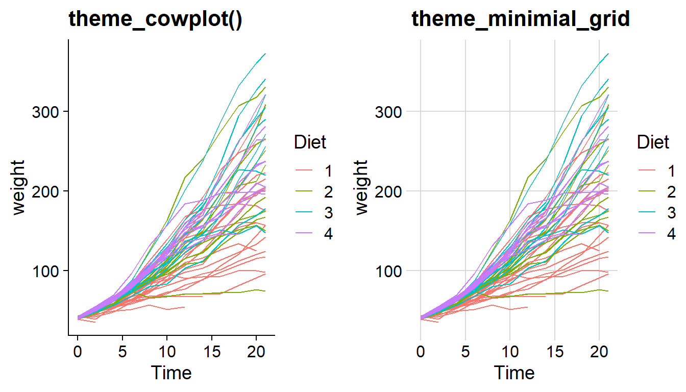 p1 + cowplot::theme_cowplot() + labs(title='theme_cowplot()'),