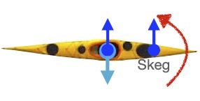 Similarly, if we change the shape of the hull, the water’s resistance can change. One way to do this is to put the boats’s skeg down (more on skegs below…):