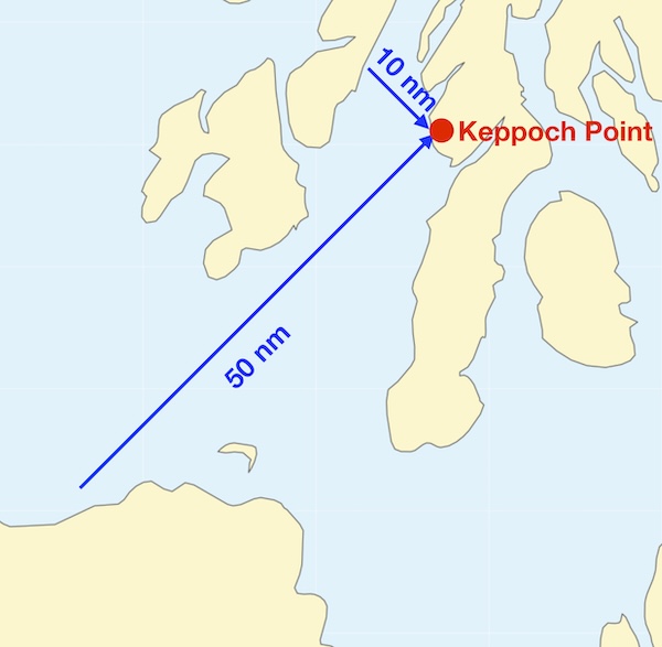 If the wind is blowing from the south-west, there is nothing to block the waves between Keppoch Point and the north coast of Ireland - a fetch of about 50 nautical miles. Over this distance, we’d expect the force 4 wind to have created an almost fully developed sea state, with waves a bit bigger than a metre.
