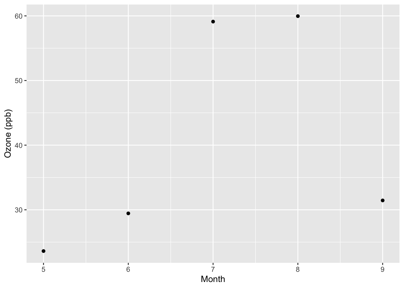 ggplot(monthly, aes(x = Month, y = ozone)) +