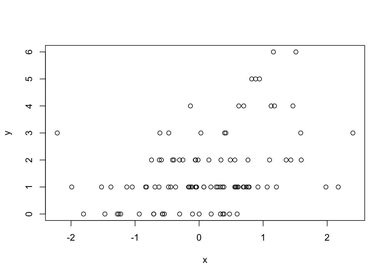 > x <- rnorm(100) Now we need to compute the log mean of the model and then exponentiate it to get the mean to pass to rpois().