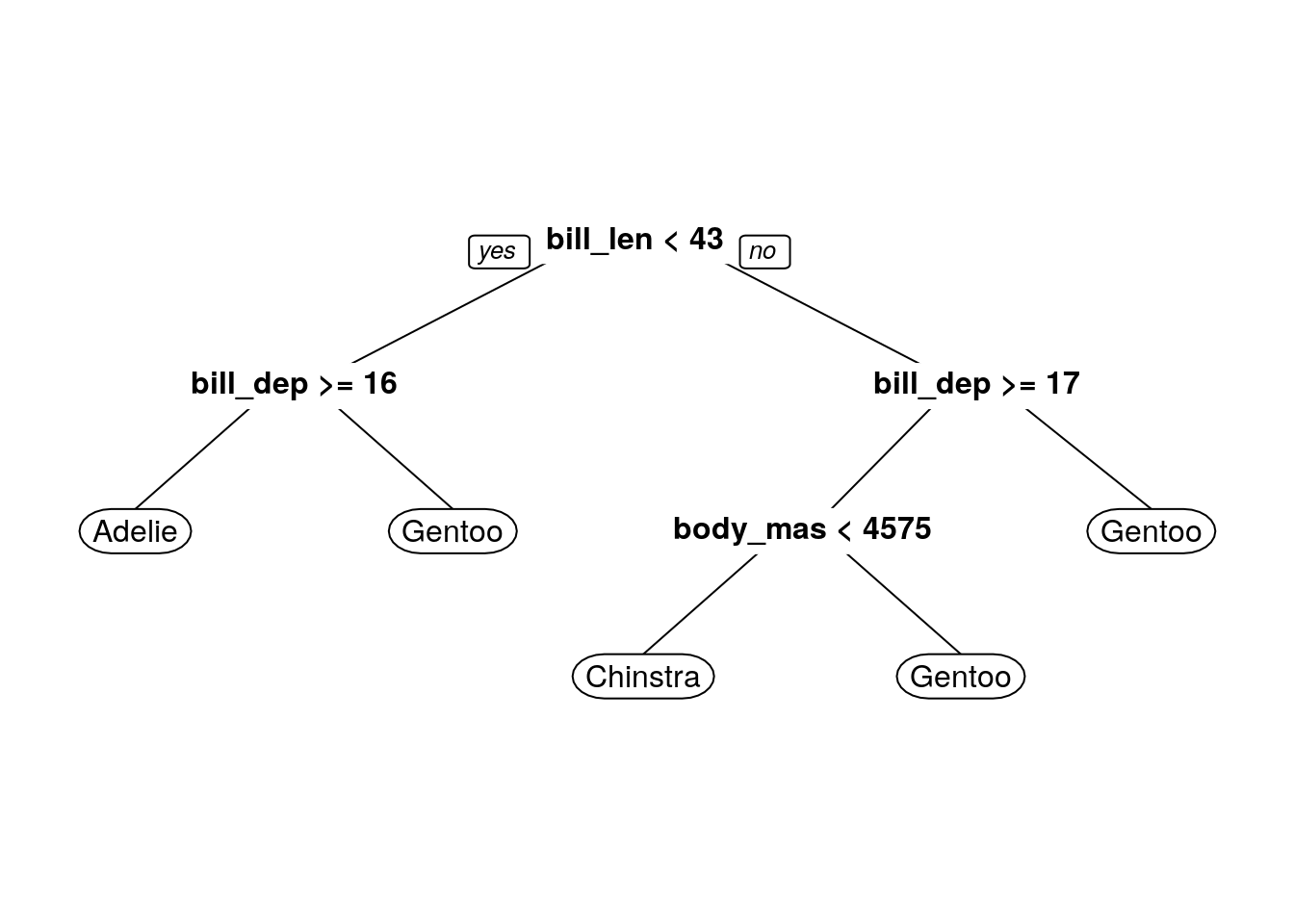 To conclude this section, let’s go through an example application of the train function, using our filtered penguin data.