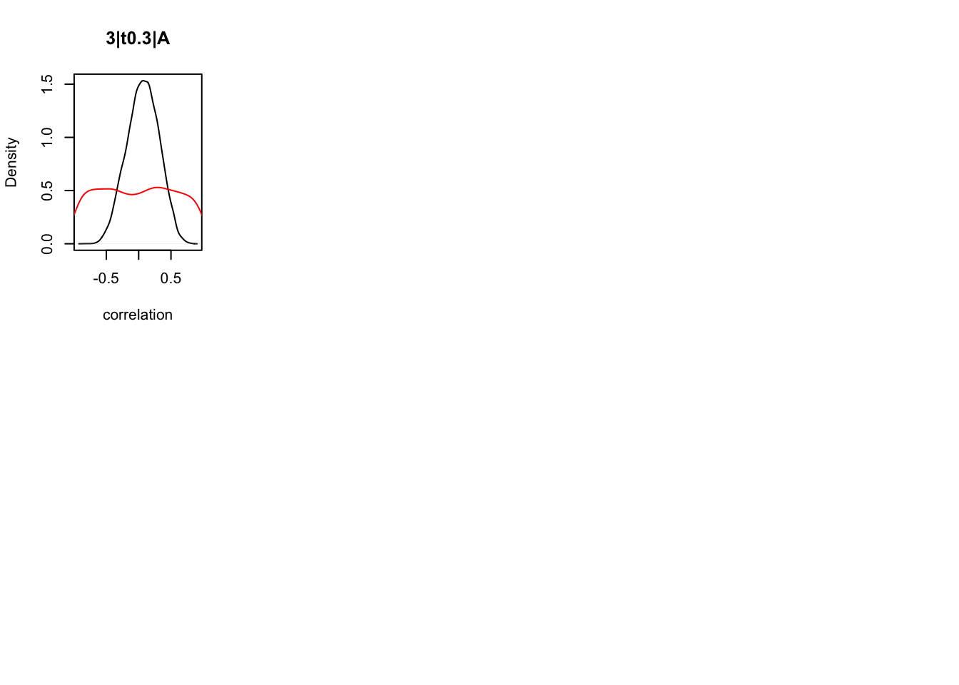 Importantly, estimating a covariance matrix limits the potential attenuation of correlations. As shown in Matzke et al. (2017), when correlation statistics are taken for point esitmates, correlations tend to be attenuated. For example, if we estimate a model for two tasks and then correlate the median posterior parameter estimates, these can be attenuated as it does not account for the full distribution, or for the measurement noise. You can think of it this way, if we don’t take into account for the noise in our measurement, all that noise will end up diluting our correlations. However, if we estimate the correlations (i.e., a covariance matrix), then this implicitly accounts for any measurement noise and provides an estimate of confidence around the correlation, i.e., a credible interval on the correlation estimate. This means when estimating the distribution of correlations, we not only observe the median correlation (which no longer suffers from attenuation), but we can also see the spread of this estimate, where a peaked distribution would indicate a higher confidence, whereas a distribution with greater spread would show us greater confidence in that estimate.