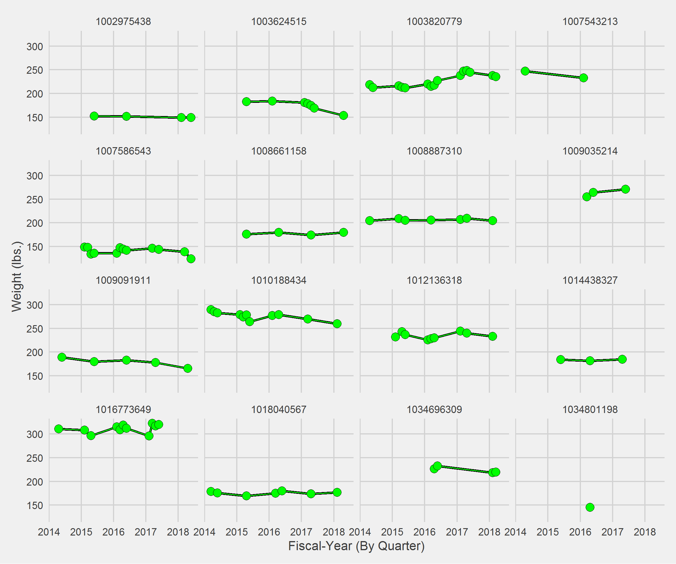 # Step 3: aggregate median weight by ID, Fiscal Year and Quarter