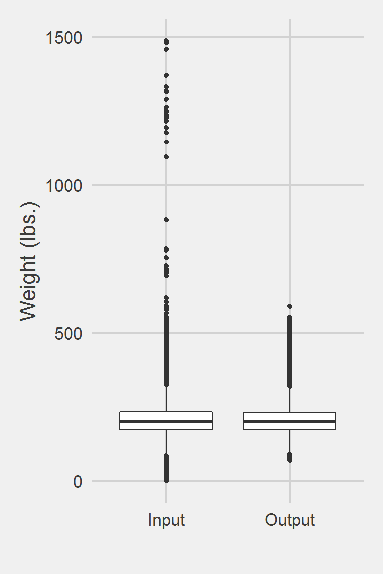 Distribution of Weight Measurements between Raw and Algorithm-Processed Values