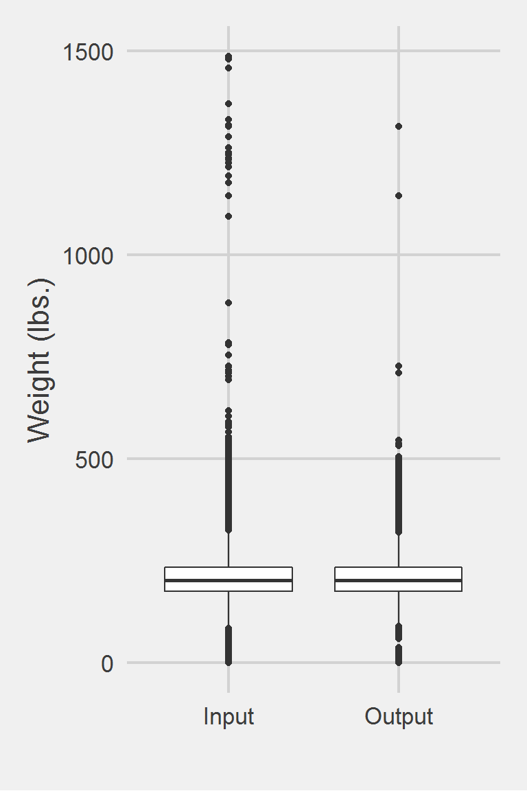 Distribution of Weight Measurements between Raw and Algorithm-Processed Values