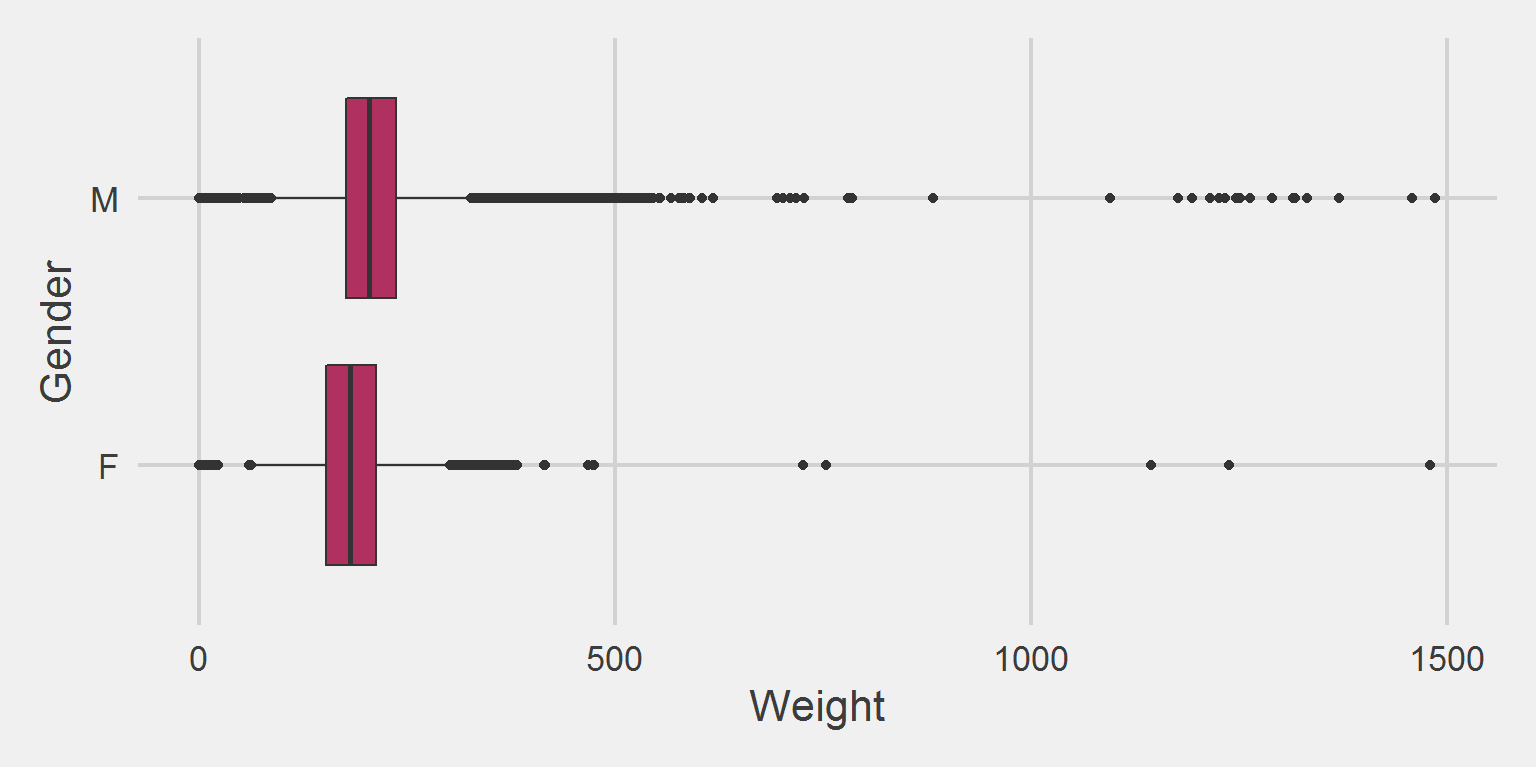 ggplot(aes(x = Gender, y = Weight)) %>%