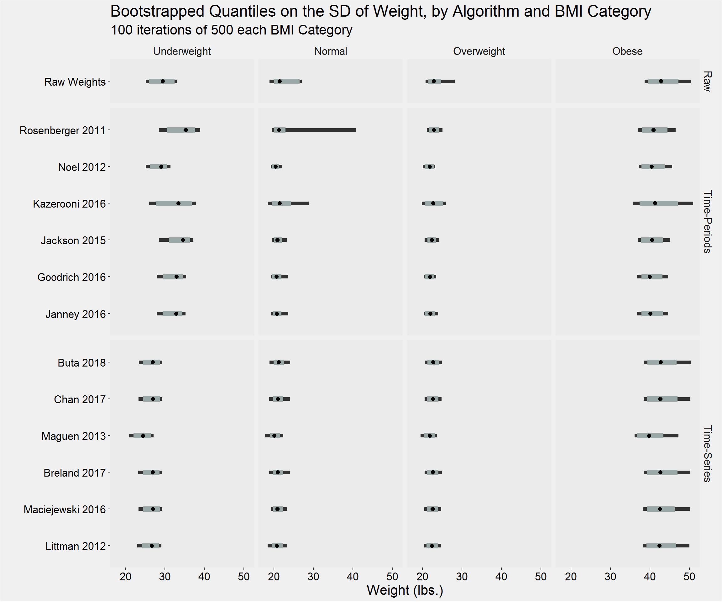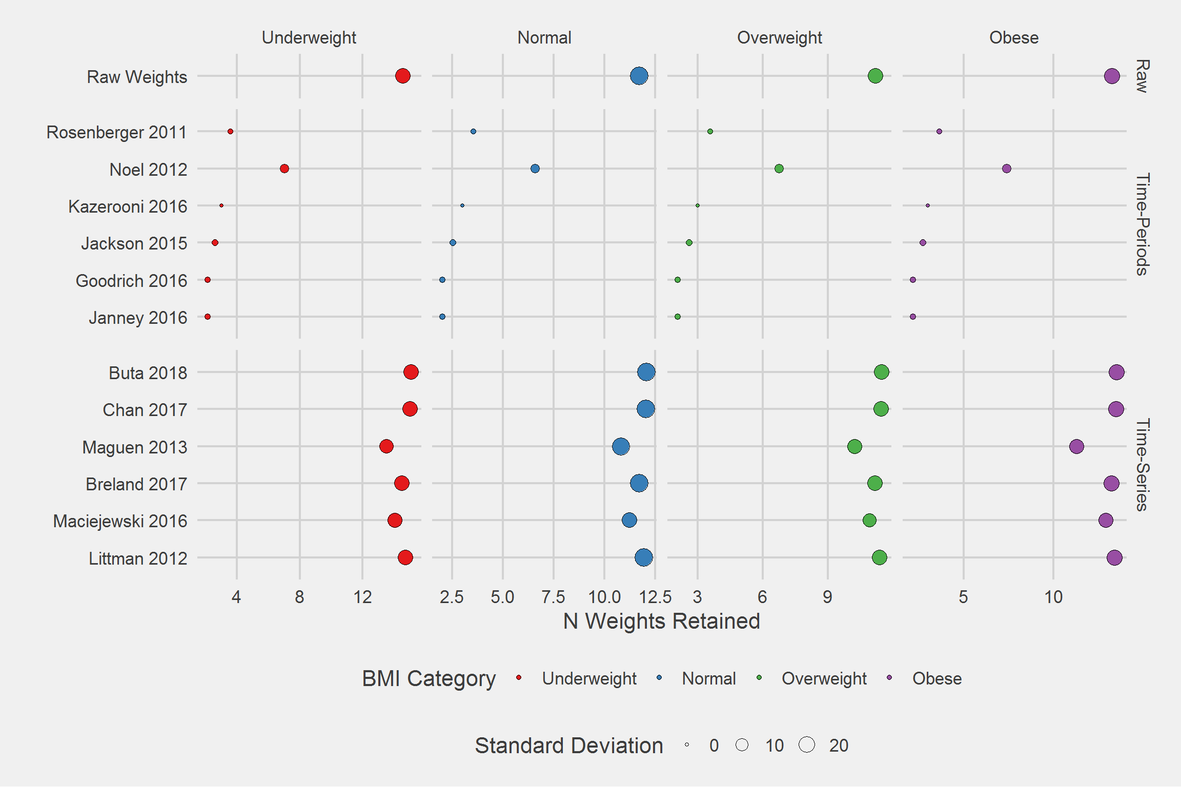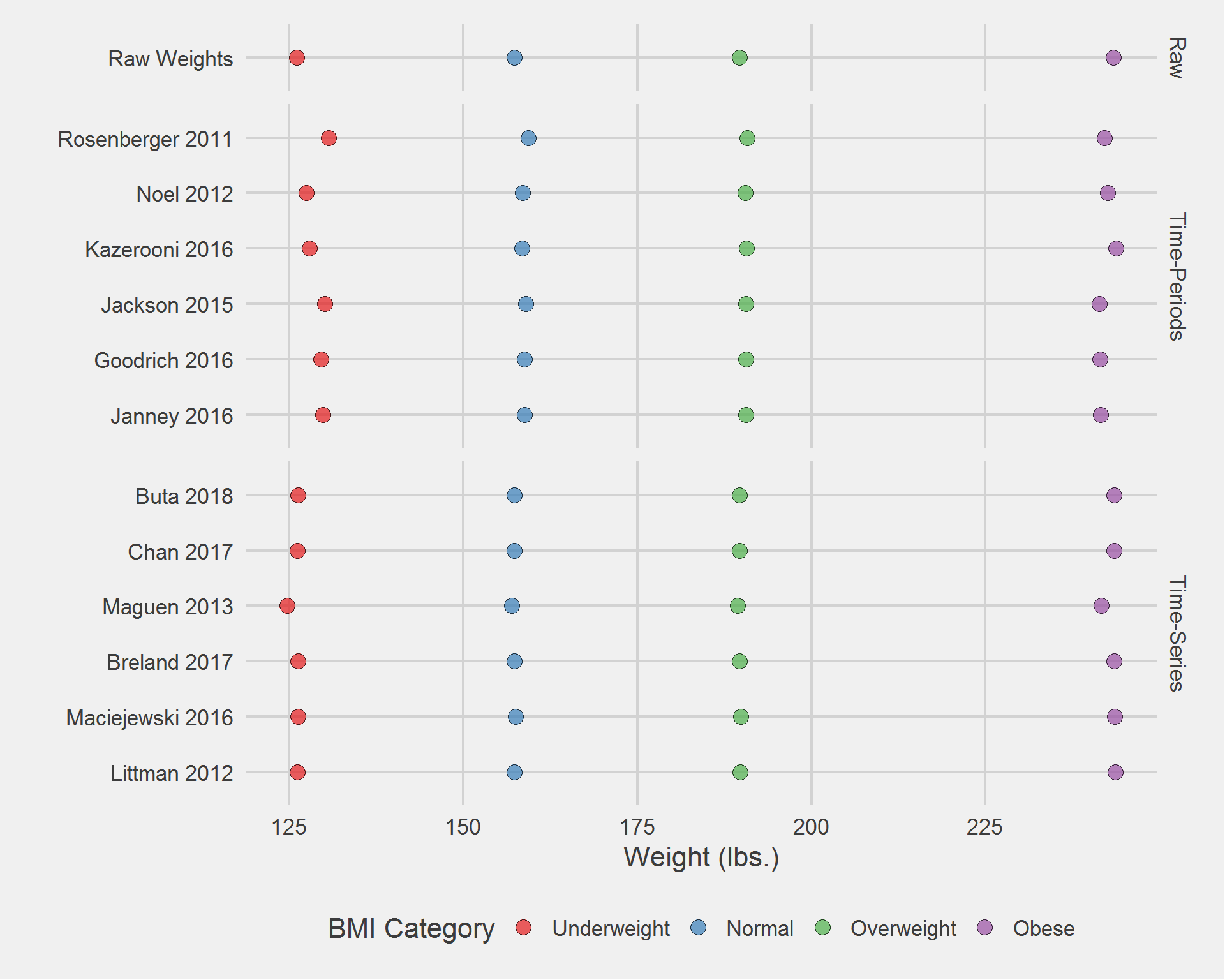 | Raw Weights | Obese | 21.49 | 17.19 | 8.20 | 14.00 | 17.60 | 23.30 | 296.10 |